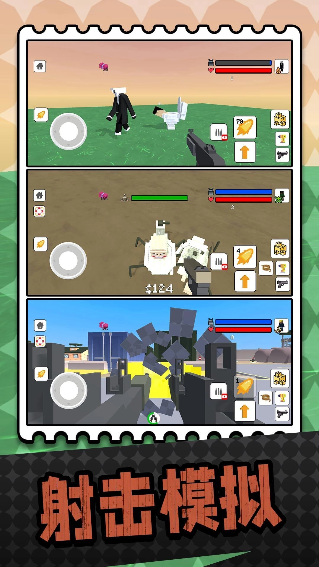 马桶人射击模拟器最新版本是一款兼具刺激感与自由度的像素沙盒射击游戏,玩家将进入一个遍布未知与危机的虚拟空间,充分感受射击歼敌的极致乐趣。该游戏以经典像素风格为亮点,打造出一个辽阔且多元的游戏世界,里面设有多张精心制作的地图,每张地图都具备独特的地貌、建筑与场景——从荒凉的沙漠遗迹到幽静的森林腹地,从破败的城市街道到幽暗的地下洞窟,玩家能够在这些地图里自由探寻,发掘隐藏的宝物和强力的武器。
