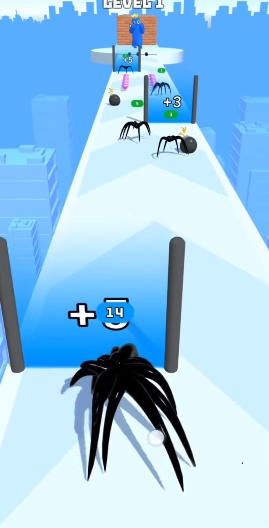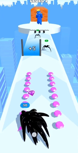 2、场景内有着各种特殊障碍,还能选择可以收集,不断提升自己的体型来应对最终的挑战。