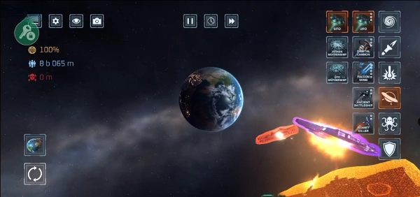 4. 目前这款游戏的操作极为简单,只需挑选丰富多样的攻击手段去摧毁星球,以此来消磨空闲时光。