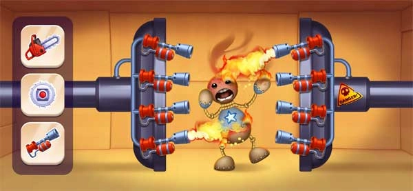 2、持续击打木偶人能够获取钱币,这些钱币可用于解锁更多道具。玩家进入游戏后,就能对木偶人执行一系列操作。