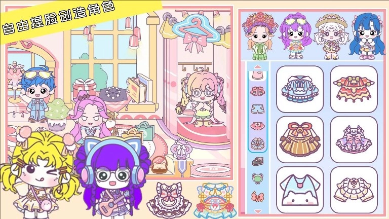 1、可以创建自己的角色,选择不同的脸型、发型、服装和妆容。