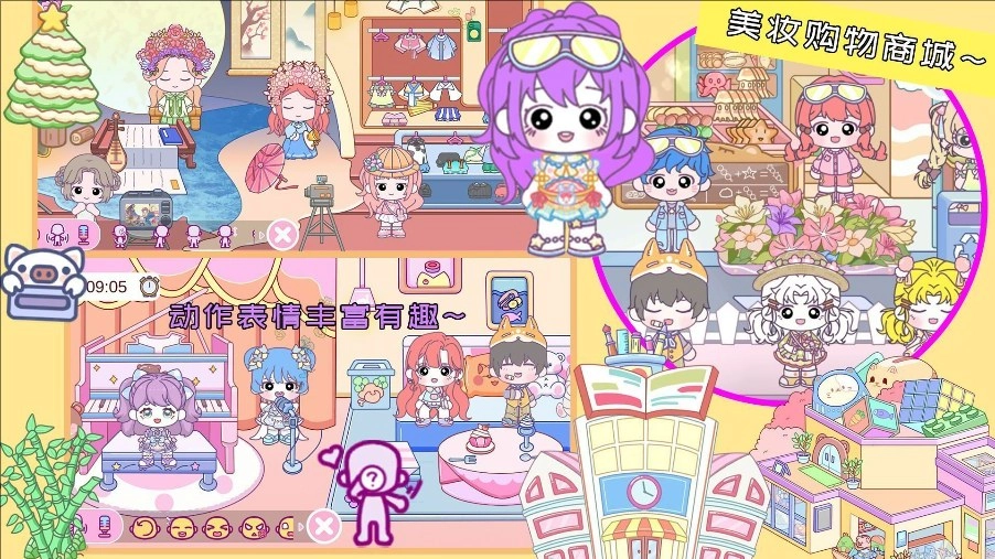 2、游戏包含购物中心、皇家舞会、星空游乐园、市中心、SPA中心、滑雪比赛等多种场景。