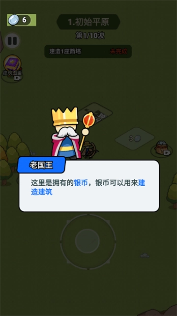 4、拖动摇杆移动到这里,先建造一座主堡吧!