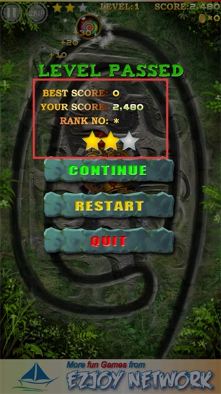 2、瞄准轨道上的彩色珠子发射弹珠,匹配三个同色即可消除,注意珠子滑行速度变化。
