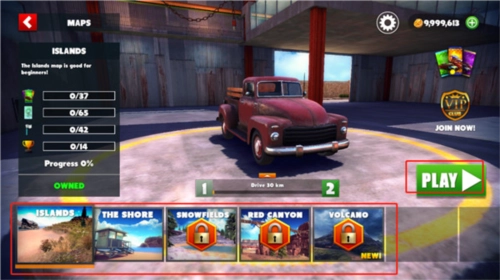 1.打开越野之路游戏,进入游戏首页,选择你想要的游戏场景,点击开始游戏;