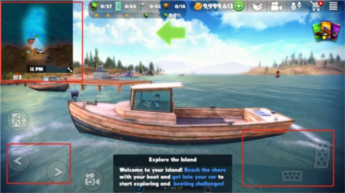 2.进入游戏后,玩家是在船上,你可以通过通过左边的按键控制方向,右边的按键来控制油门和刹车;
