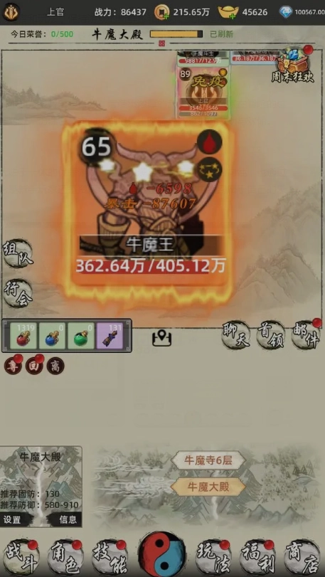 3. 福利BOSS是获取高阶装备的主要渠道,门派任务会提供大量修为与贡献值,这些资源可用于兑换稀有武学秘籍。