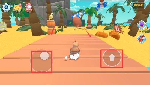 1、开局先熟悉卡皮巴拉的移动方式,根据箭头标识方向前进,注意躲避路上的障碍物。