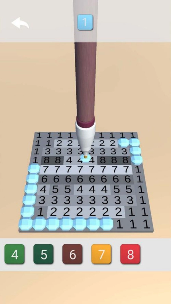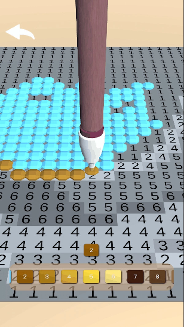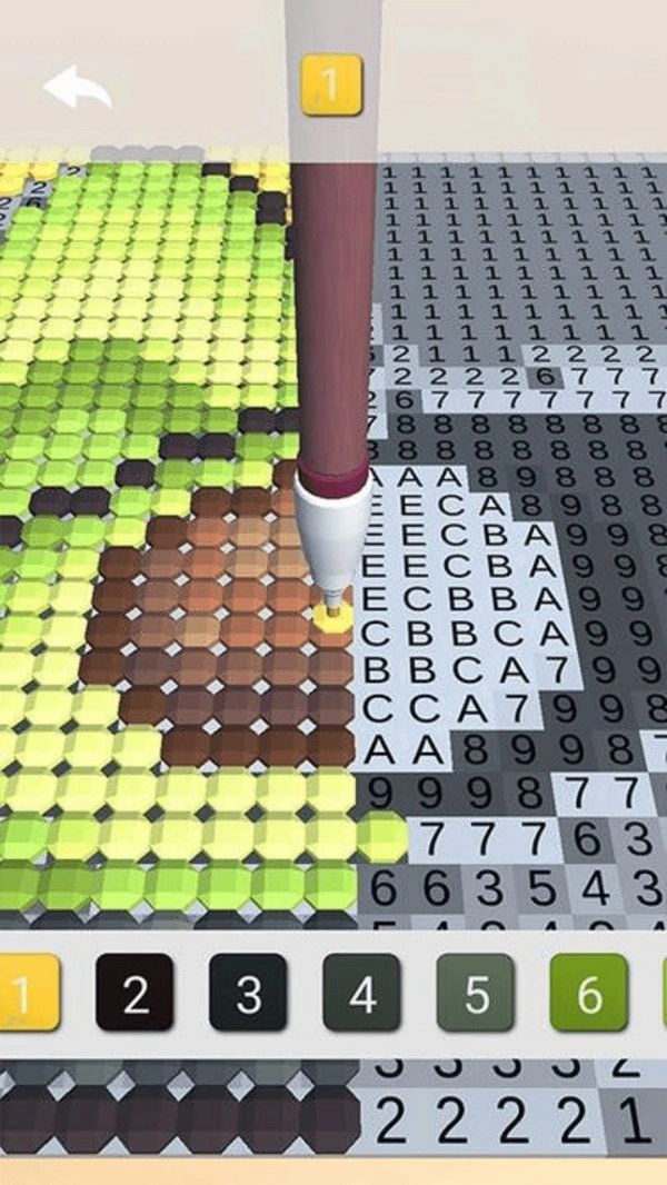 1、画面中每条线的绘制区域都标有数字,每个数字对应一种颜色,玩家需先熟悉数字与颜色的对应关系。