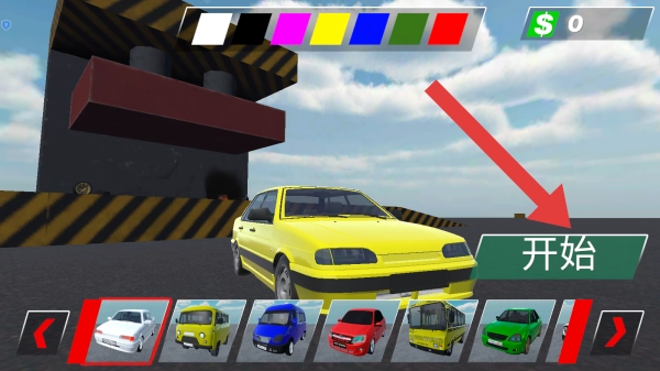 1、画面呈现车辆选择的页面,需要玩家根据自身的喜好进行选择,选择后可点击开始游戏。