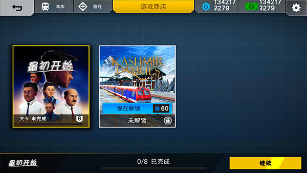 3、点击"路线",你可以选择不同的游戏背景以及火车的轨道路线。