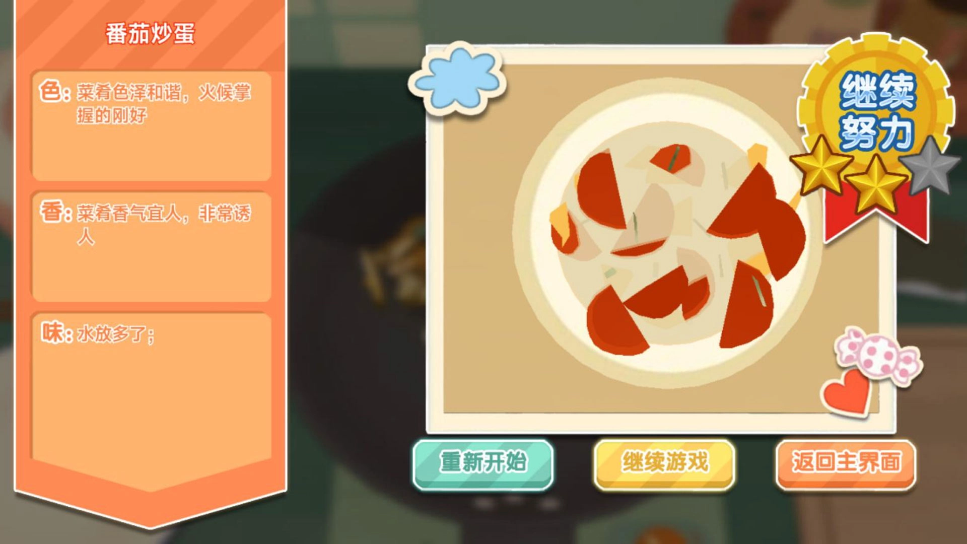 3、查看烹饪成果:完成所有步骤后,查看最终的料理成果,根据评价了解自己的烹饪水平,不断总结经验,尝试做出更完美的美食。