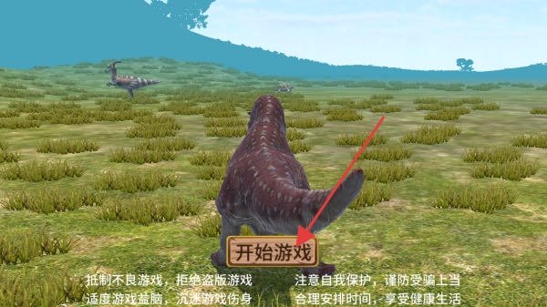 1、进入游戏界面后,点击开始游戏按钮,即可开启恐龙模拟游戏的冒险之旅。
