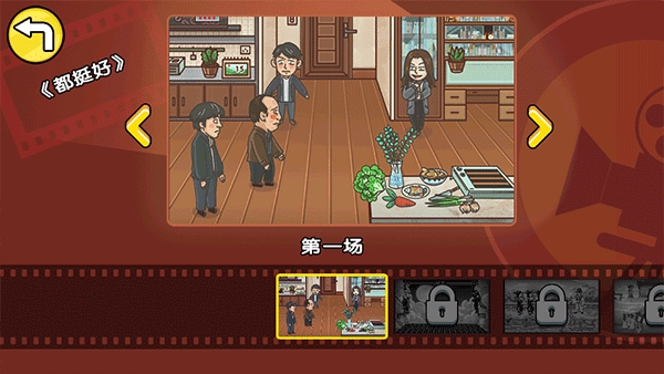 2、横版界面,用卡通的画风来展现一些有趣的影视情节,你来答题。