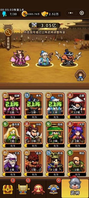 11.武将 红色都好用 貂蝉最实用 橙色华佗典韦最好用 其他随意搭配 主要要出武将的技能进阶 武将达到等级就可以