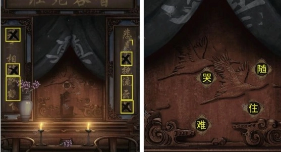 6、根据挽联的线索,调整浮雕机关,得到【桃木剑】和【钥匙】。