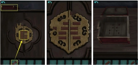 16、把【铜锁块】放进空缺处,依据盒子的提示,调整机关打开柜子,获取【茶壶】。