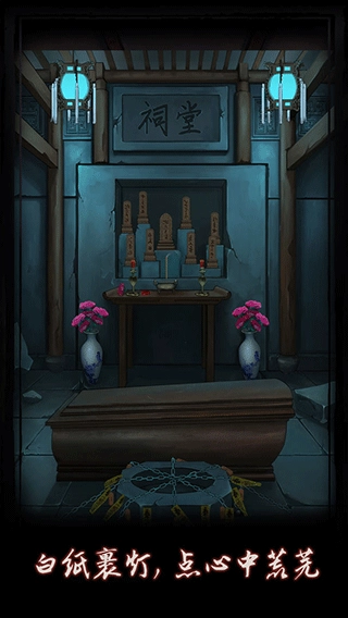 10、从祭桌上取走【纸花】,把【纸花】插进花瓶,观察花瓶获取线索。
