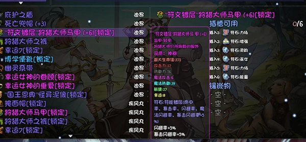 另外这套装备强度很高,强烈建议留些6孔装备来镶嵌符文,毕竟10%的闪避效果,谁能扛得住啊。