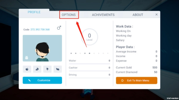 1、启动失业生活模拟器这款游戏,进入游戏界面后,我们能够给自身的角色设定名字,还可以DIY出自己喜爱的角色形象。