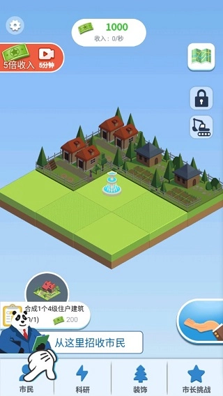 1、点击合成建筑:通过点击操作来合成各类不同的建筑,从基础建筑开始慢慢合成更高级的建筑,以此来积累城市建设的基础,推动城市的面貌持续升级。