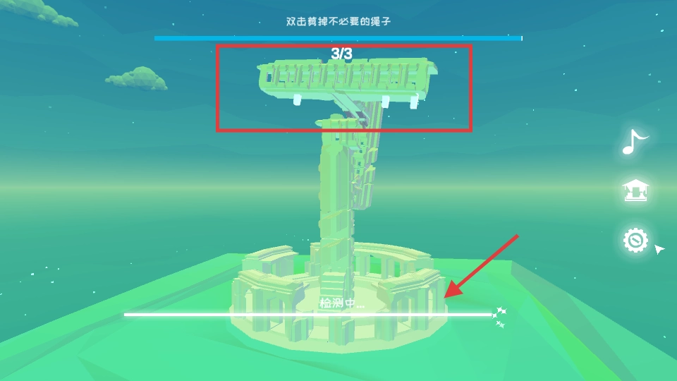 2、找建筑上的绳子,双击剪掉(完成3根)。