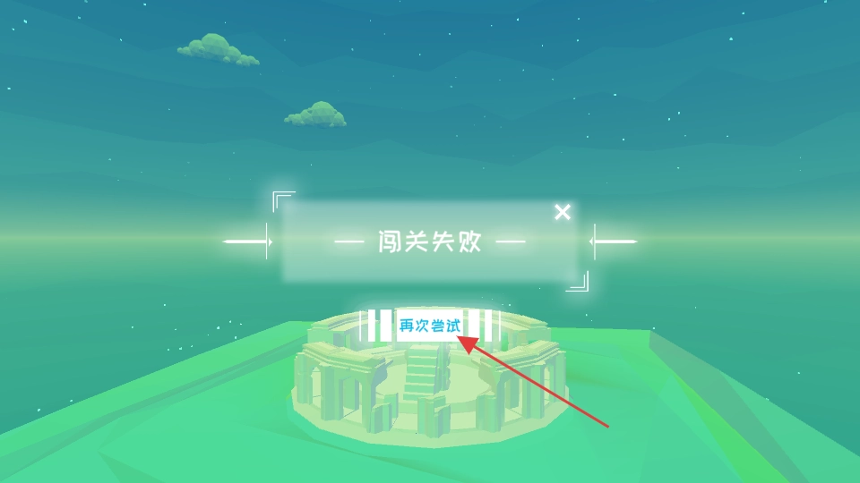 4、失败就点“再次尝试”,重新剪绳子闯关。