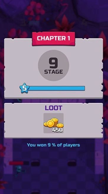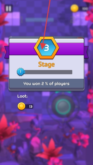 3、成功通关后会出现关卡完成界面(例如Stage 3),在此界面中,你能够查看个人游戏进度以及击败其他玩家的百分比数据,还能获得金币奖励;点击继续按钮,即可向更高难度的关卡发起挑战。