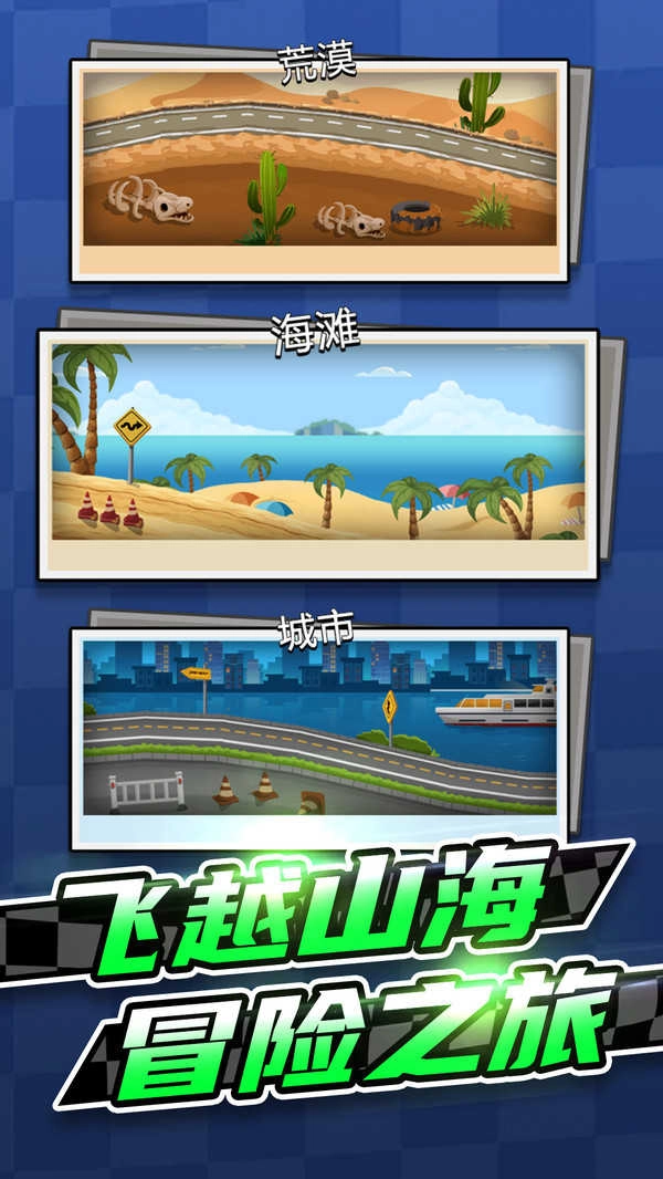 这里面有各种各样的地形地图,就看你能凭借自己的实力跑到多远啦?这可不是光靠一个劲儿加油就能稳拿第一的游戏哦!速度当然很关键,但开车也是需要讲究技巧的呀!
