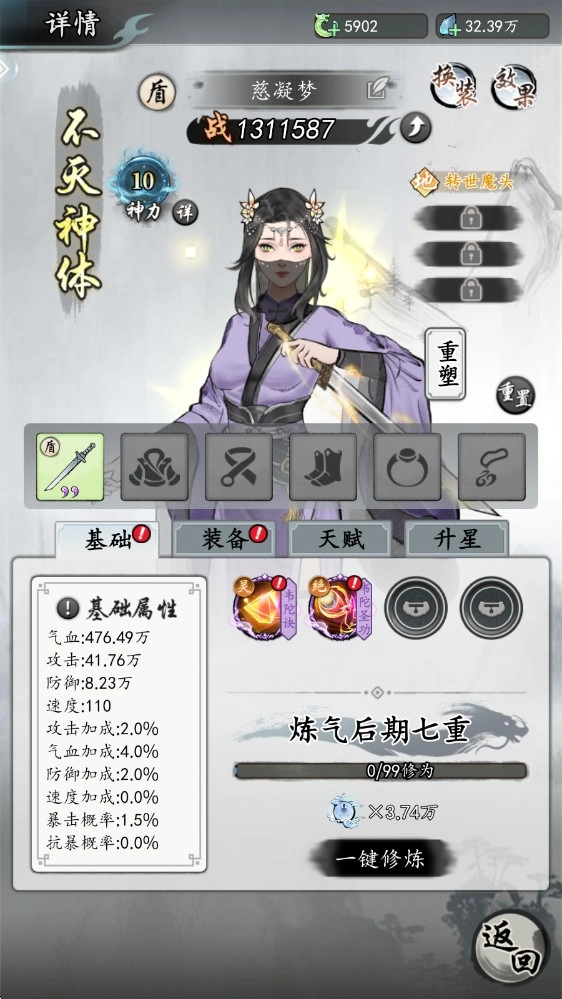 2、仙众养成:当下主流的玩法是把资源主要集中投入到法师身上,涵盖境界提升、功法修习、装备配置等多个方面。