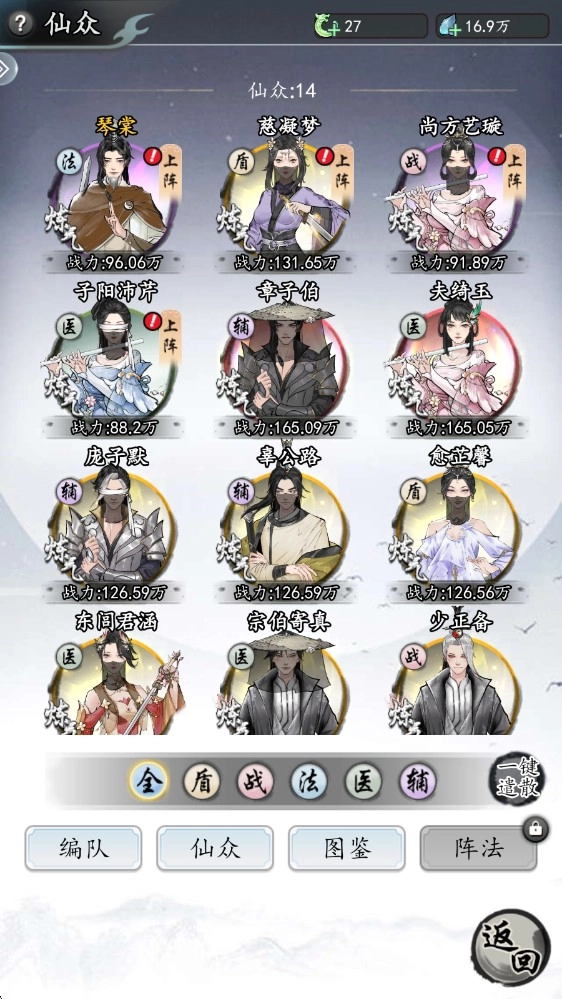 6、进入仙众界面,我们就能够查看自己已有的仙人了。