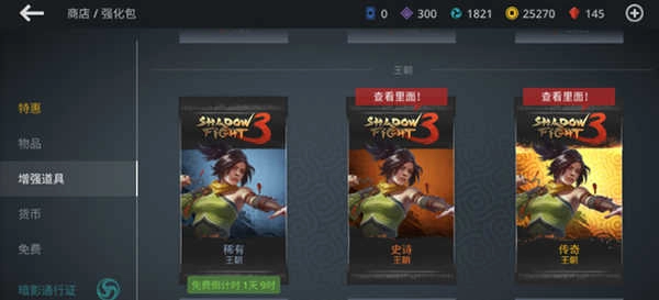 3、第三种类型是增强道具,这类道具属于游戏商城中的物品,具体包含稀有军团、史诗军团和传奇军团三种。其中稀有军团是免费获取的,玩家每天都能拥有一次免费领取它的机会,并且军团的等级越高,从中开出技能的概率就越大。