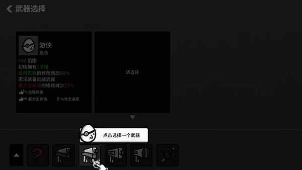 3、选好角色后就能挑选武器,等后续技能逐步解锁,玩家可以选择的武器数量最多能达到6把。