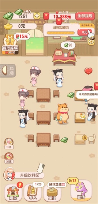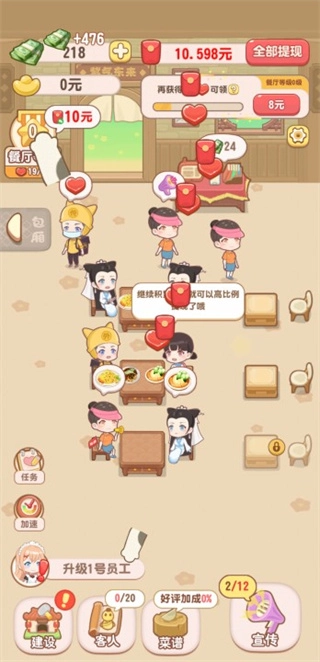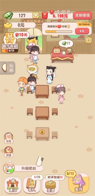2、使用自己的收益来建设餐厅,扩大自己的经营范围。