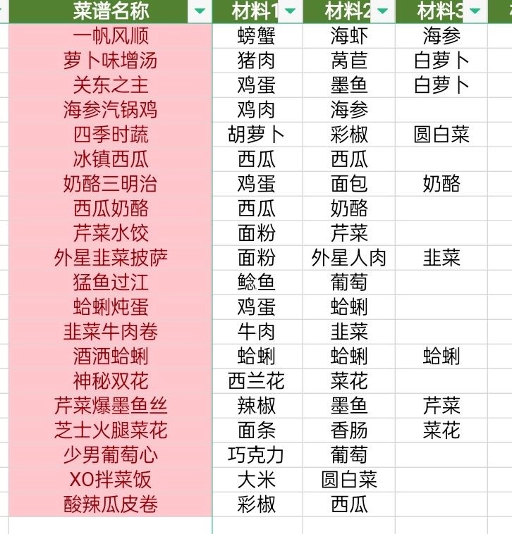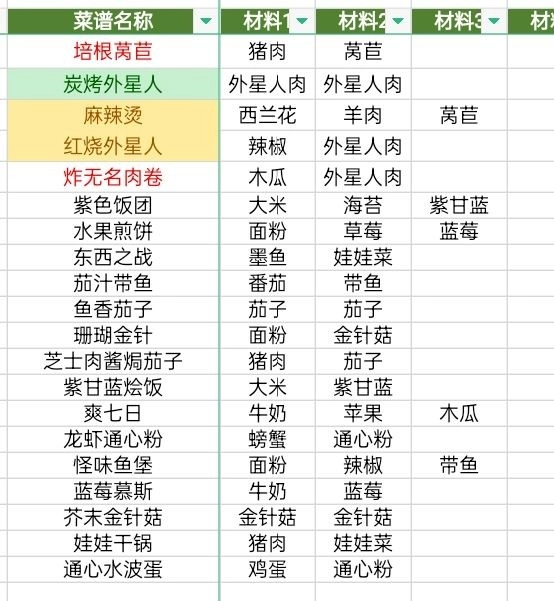 3、原创的烹饪系统,玩家将任意食材进行搭配,产出不同的食物。
