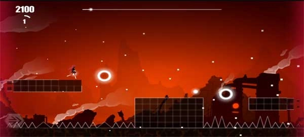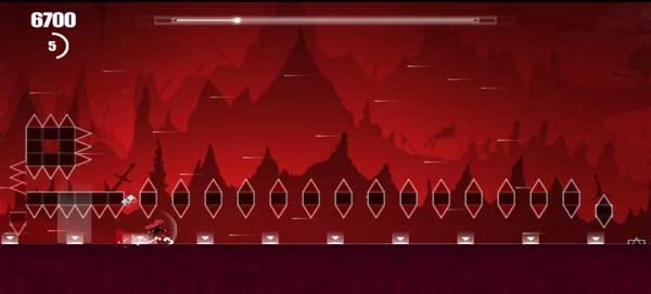 跳起的触发时机由这些分段排列的小尖刺或障碍物决定,操作方式为点击屏幕。
