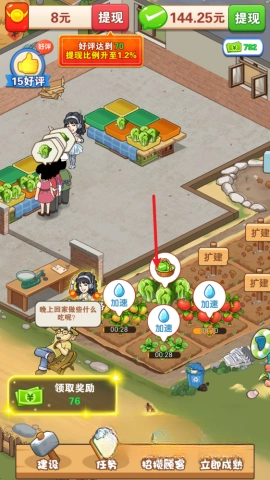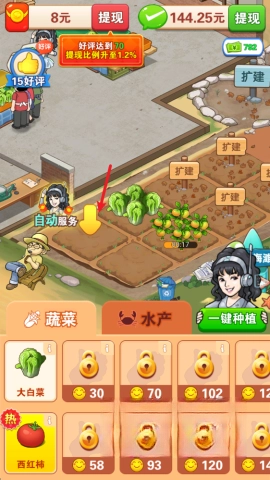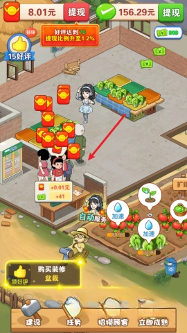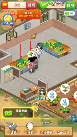 3、收获后的产品会被送到菜市场,玩家能够通过点击顾客头上的图标来完成销售操作。