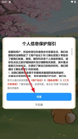 2、在界面上点击同意个人信息保护指引。