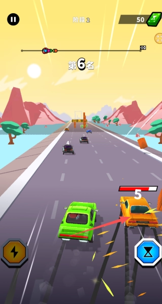 2、可以直接点击并拖动车辆来调整行驶方向,同时还能通过撞击其他车辆的方式对其造成伤害。