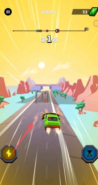 3、可以使用左右两侧的技能按钮,提升速度,快速超越对手。