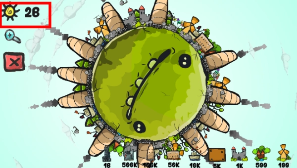 注意右下角的物品,点击放入地球表面,会增加分数