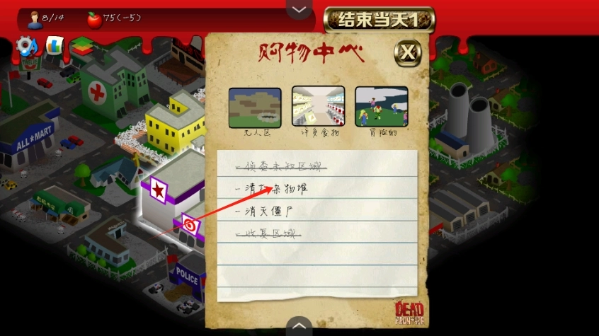 3、选择清干杂物堆任务,可清理购物中心的杂物,获取资源解锁新的区域,推进进程。
