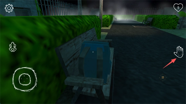4、靠近后,可以看到背包,同时点击屏幕右侧的“手掌”标识。