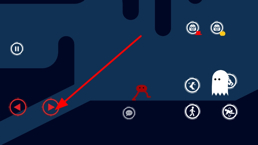 1、点击界面左侧的前进按钮,控制角色在场景中移动,朝着目标方向前进,开启关卡挑战的第一步,为后续操作创造条件。