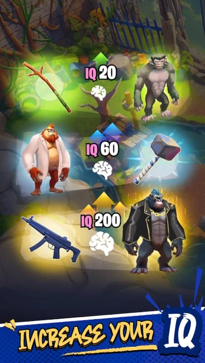 1、全方位猿类进化体系,助力玩家在提升智力、强化攻击力与技能的过程中,逐步感受猿人的成长与蜕变。