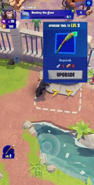 2、探索动物园环境,收集资源、道具和武器,为猩猩和团队成员升级。