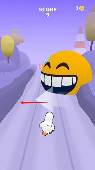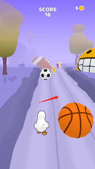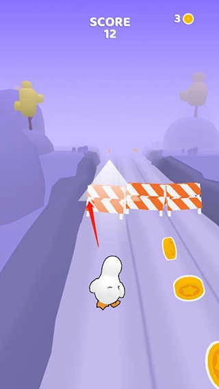 2、这款游戏的玩法其实很简单,采用经典的跑酷模式,玩家通过上下左右滑动屏幕来操控鸭子进行跑酷,像遇到这类障碍物时就向下滑动即可。