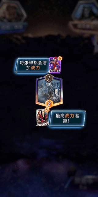 3、战场中的每张卡牌都会增加己方战力,最高战力者获胜;