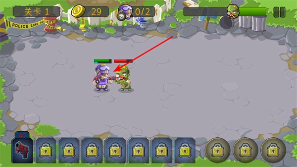 3、放置的战斗单位会自动与僵尸交战,需关注战斗进程,确保单位能有效的消灭僵尸,守护阵地。