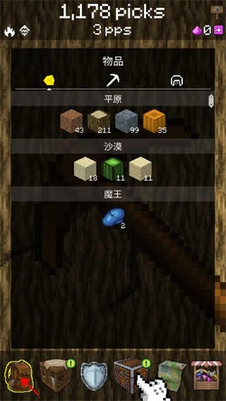 1、进入PickCrafter最新中文版游戏后,只需点击画面,就能用你的镐进行挖矿操作了。
